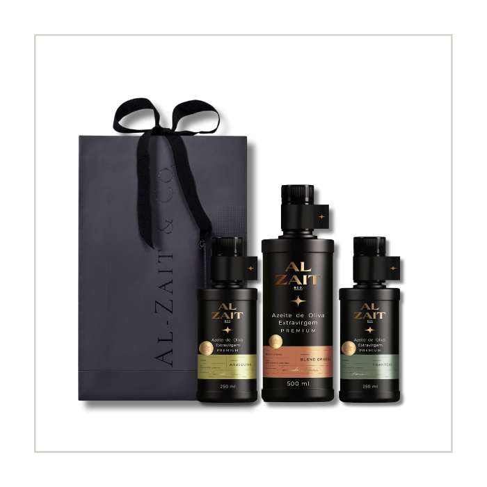 01 Blend Al-Zait ORIGENS 500 ml - Um encontro de três variedades de origens distintas. A complexidade se revela em camadas: fruta intensa, leve picância e um amargor elegante. De intensidade moderada a alta, é versátil e marcante — transforma o cotidiano em ritual.